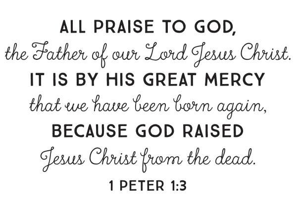 All praise to God, the Father of our Lord Jesus Christ. It is by His great mercy that we have been born again, Because God raised Jesus Christ from the dead. - 1 Peter 1:3