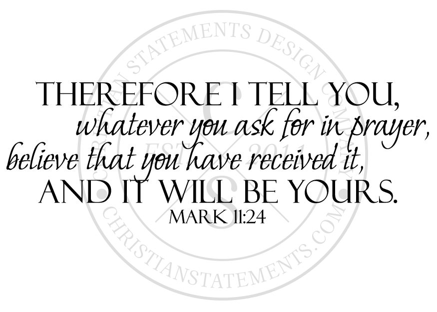 Therefore I tell you, whatever you ask for in prayer, believe that you have received it, and it will be yours. - Mark 11:24