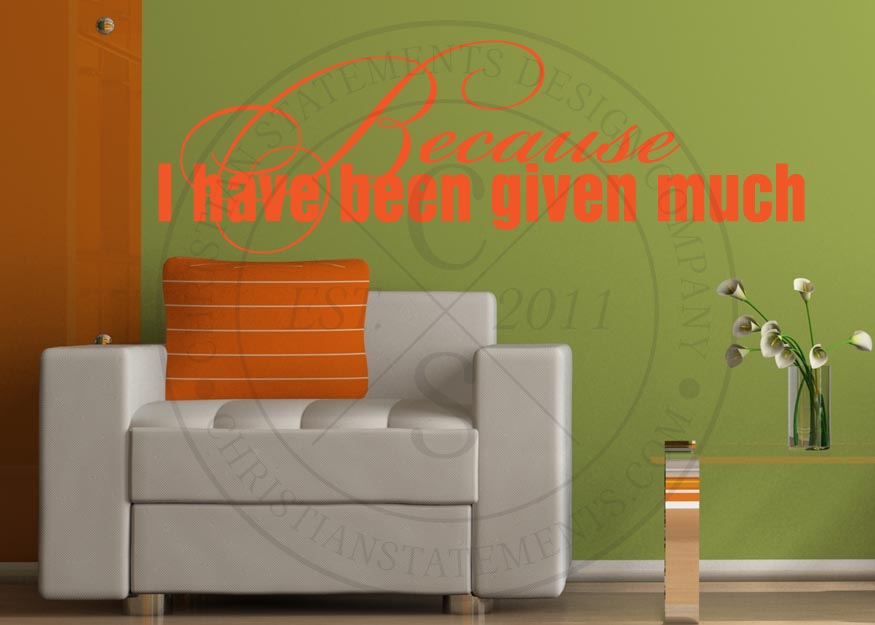 Because I Have Been Given Much Vinyl Wall Statement #1Because I Have Been Given Much Vinyl Wall Statement #2