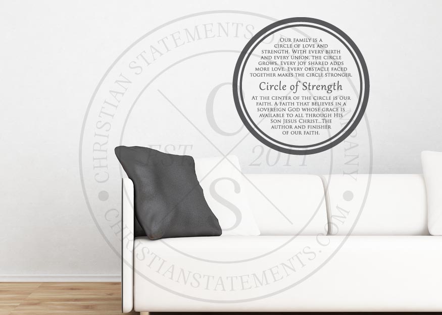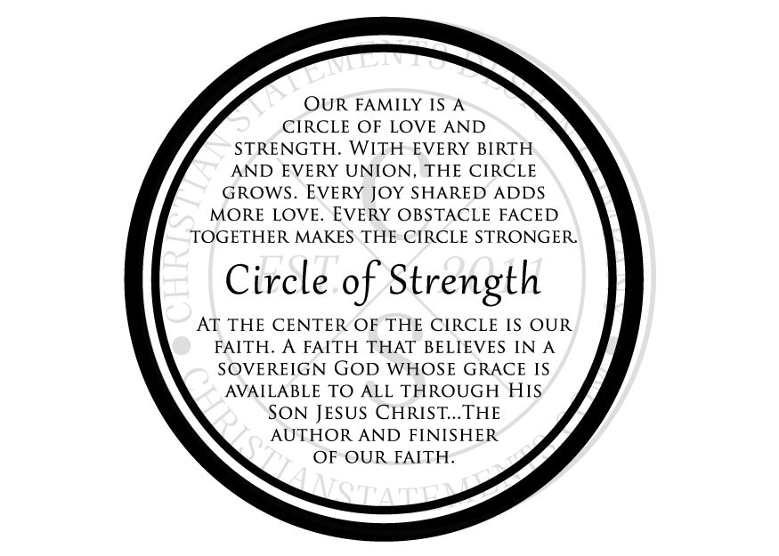 Our family is a circle of love and strength. With every birth and every union, the circle grows. Every joy shared adds more love. Every obstacle faced together makes the circle stronger. Circle of Strength At the center of the circle is our faith. A faith that believes in a sovereign God whose grace is available to all through His Son Jesus Christ...the author and finisher of our faith.