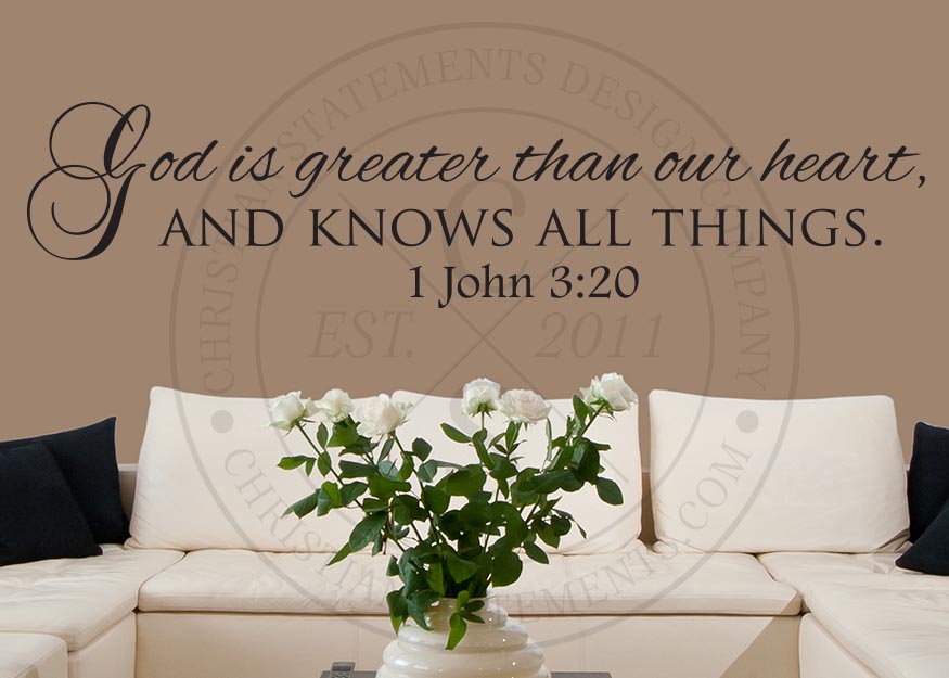 God Is Greater Than Our Heart Vinyl Wall Statement - 1 John 3:20 #1God Is Greater Than Our Heart Vinyl Wall Statement - 1 John 3:20 #2