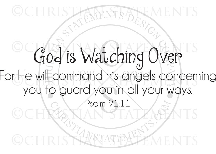God Is Watching Over Vinyl Wall Statement - Psalm 91:11 #1God Is Watching Over Vinyl Wall Statement - Psalm 91:11 #2