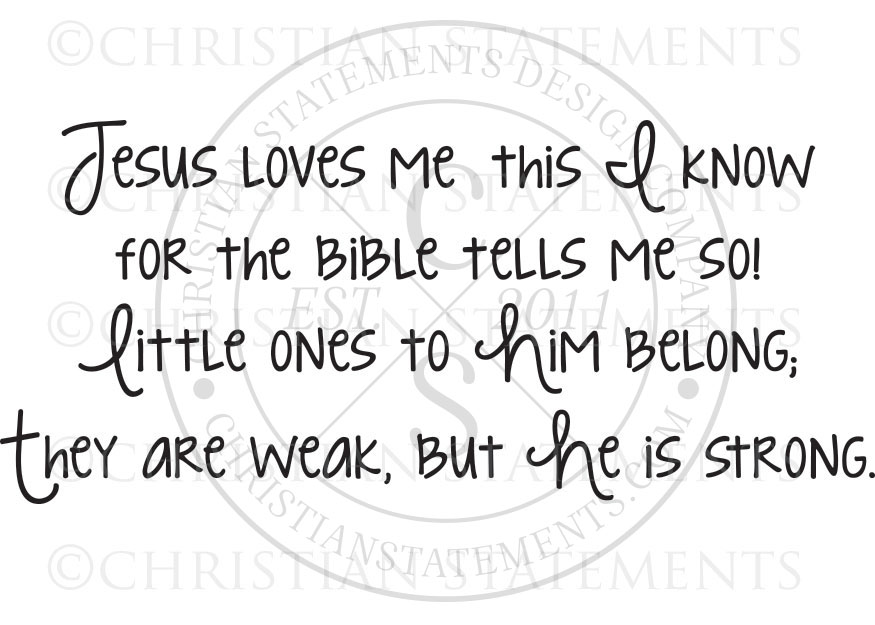 Jesus loves me this I know for the Bible tells me so! Little ones to Him belong: they are weak, but He is strong.