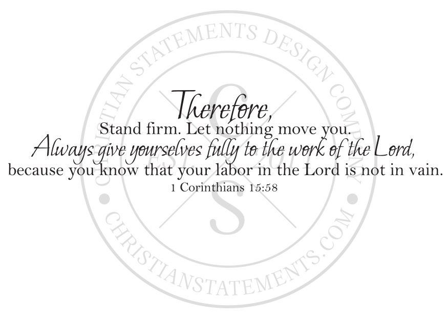 Therefore, stand firm. Let nothing move you. Always give yourselves fully to the work of the Lord, because you know that your labor in the Lord is not in vain. - 1 Corinthians 15:58