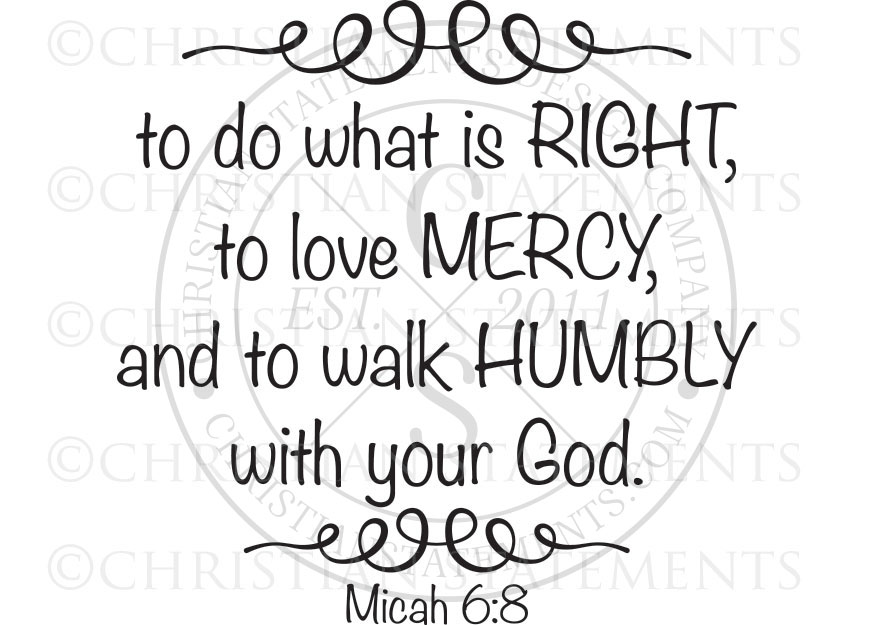 To do what is right, to love mercy, and to walk humbly with your God. - Micah 6:8
